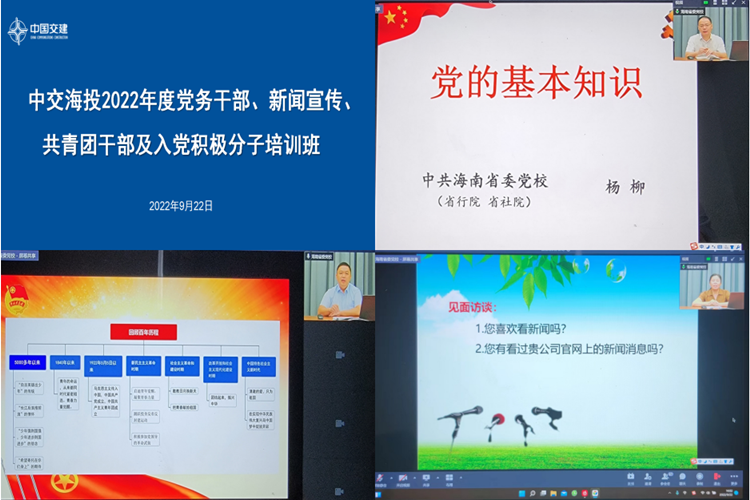 為深入學(xué)習(xí)貫徹習(xí)近平新時代中國特色社會主義思想,進(jìn)一步提高公司黨務(wù)工作、新聞宣傳工作、團(tuán)青工作水平,充分發(fā)揮各級黨組織的先鋒模范作用,9月22日,公司舉辦2022年度黨務(wù)干部、新聞宣傳、共青團(tuán)干部及入黨積極分子培訓(xùn)班。中交海投黨委副書記、紀(jì)委書記、工會主席楊凱出席開班儀式并發(fā)表講話。